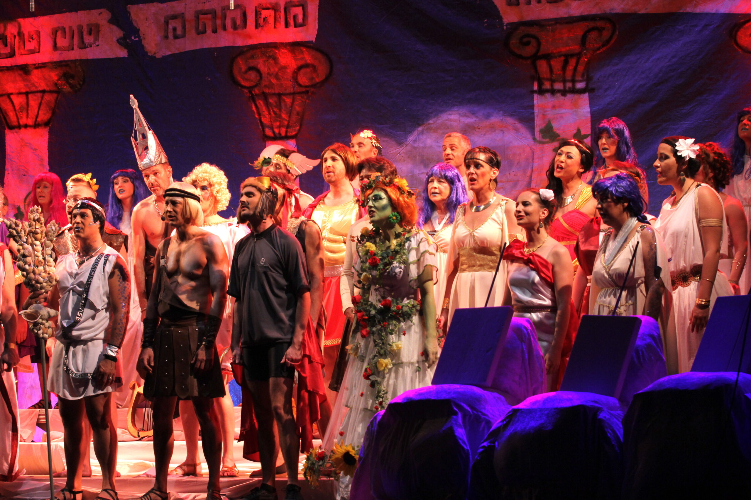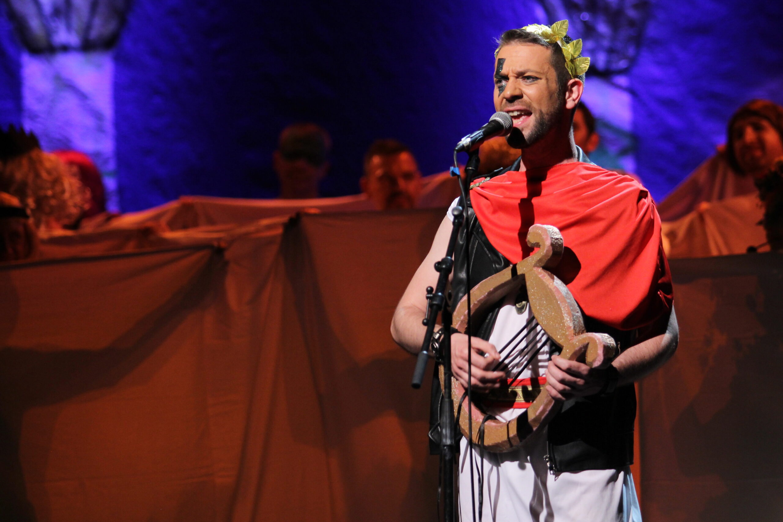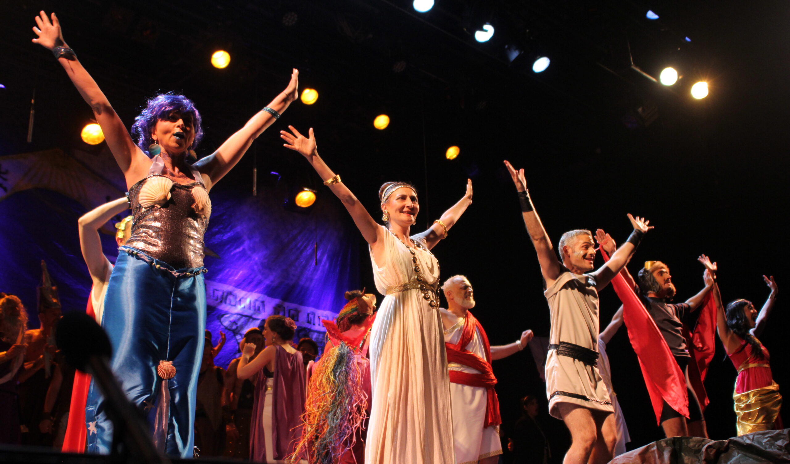 Le chœur Pelicanto nous emmène cette année dans une épopée anachronique entre mythologie grecque et télé-réalité, où se côtoient dieux, déesses et héros antiques.
